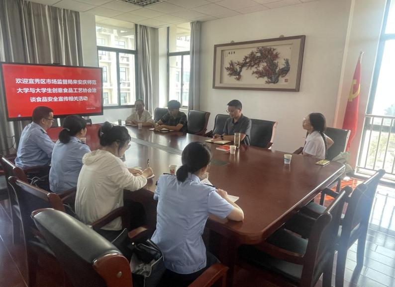 2024年9月6日上午,我校大学生创意食品工艺协会与宜秀区市场监督管理局就食品安全相关活动及长期合作进行洽谈,旨在通过合作提升学生食品安全意识,增强公众对食品安全的认知,共同构建坚固的食品安全防线。