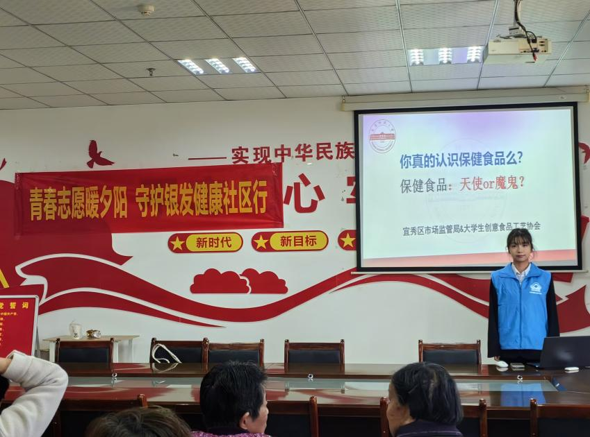 10月30日,安庆师范大学大学生创意食品工艺协会携手市监督局举办了一场意义非凡的讲座——“科学认知保健品健康饮食享生活”。此举贯彻落实《全市保健食品科普宣传“守护银发健康”社区行活动方案>的通知》。