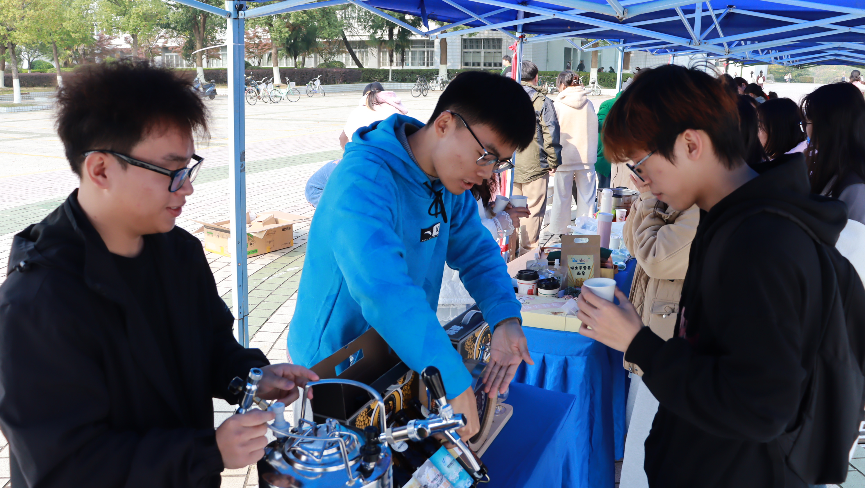 来到创意食品展位,欢声笑语与诱人香气交织,吸引了众多学生。“我们希望借趣味游戏与美食,传递创意美食文化。”讲解员、食品科学与工程专业2023级的陈瑶瑶微笑着说。游戏环节“正话反说”颇具挑战,学生们需快速倒着说出词语,获胜者可以率先品尝美食,紧张又有趣。陈瑶瑶表示,无论是造型别致的糕点,还是融合中草药的饮品,都出自专业学生之手,食品安全都是有保障的。