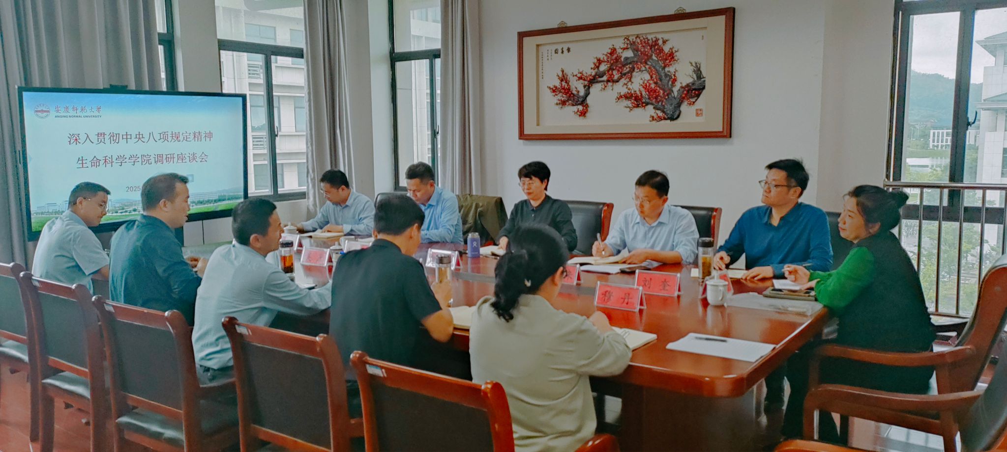 5月8日,校长彭凤莲深入生命科学学院调研走访,详细了解学院深入贯彻中央八项规定精神学习教育开展情况,并重点围绕引进高层次人才考核及中期发展评估开展深入交流,学校党委教师工作部、教务处、科研处、学科建设处、财务处等职能部门陪同调研,学院班子全体成员参加座谈。