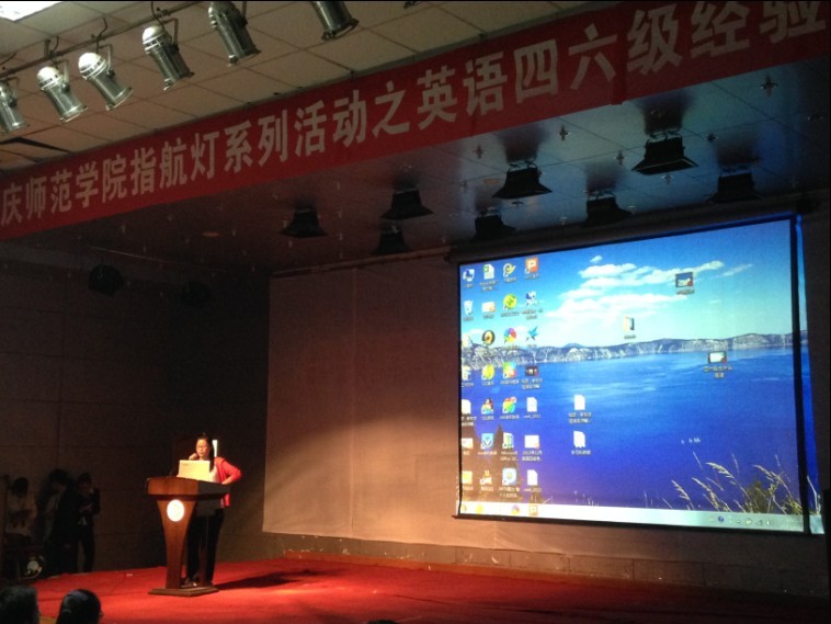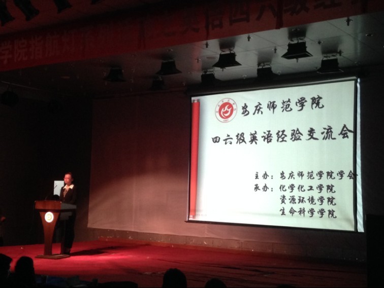 交流会上,王老师首先上台,向在座的同学们分析了今年四六级考试最新改革后的题型,并通过举例的方式给出了相应的解答策略。接着,她又详细的解答了现场学生提出的问题,例如如何做好阅读题,如何更清晰把握住听力内容等。在轻松愉快的气氛中,来自生命科学院的包红同学登上讲台,她凭借自己幽默诙谐的表达方式,将自身的考级经验,尤其是单词记忆方面的经验讲解给大家,获得了在座同学们热烈的掌声。随后,来自化工学院的易方同学和资环学院的韩营同学也分别就听力、作文、翻译三个方面阐述自己的经验。最后,在现场嘉宾美妙的英文歌声中,交流会圆满结束。