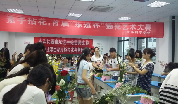 六月初夏,红莲初绽,栀子飘香,值此之际,安庆师范大学生命科学学院举行首届‘素手拈花’东道杯插花艺术大赛,学院的大学生们结合自己所学专业知识,使用多种花材进行现场创作,充分表达了当代大学生对这一悠久艺术的理解和传承。本次比赛特意聘请了安庆市花艺协会主席胡志松老师、副主席江松林老师、市彬彬花店江彬老师,以及生命科学学院领导及园林教研室的老师们组成专家评委,对12幅插花作品进行现场打分、点评和总结。通过这次活动,检验了学生的专业知识,开拓了学生的视野,激发了学生的创新意识,达到了预期的效果。