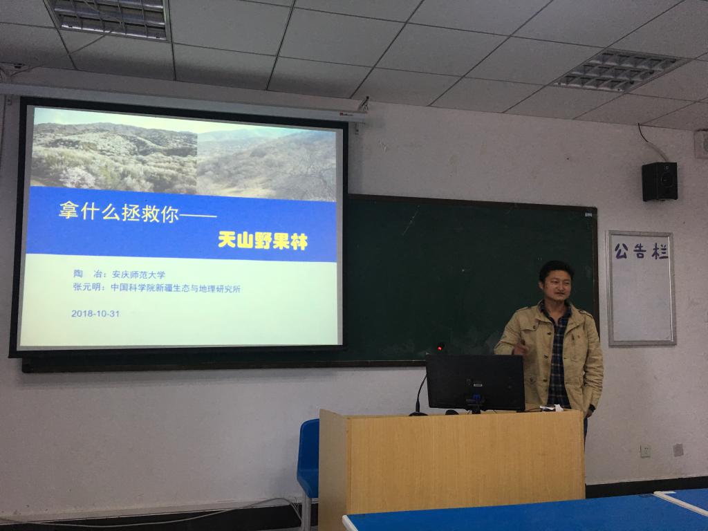 10月31日下午2点,生命科学学院陶冶博士在G106教室作了题为“拿什么拯救你,天山野果林”的专题讲座。该院生物科学、生物技术专业的学生聆听了报告。