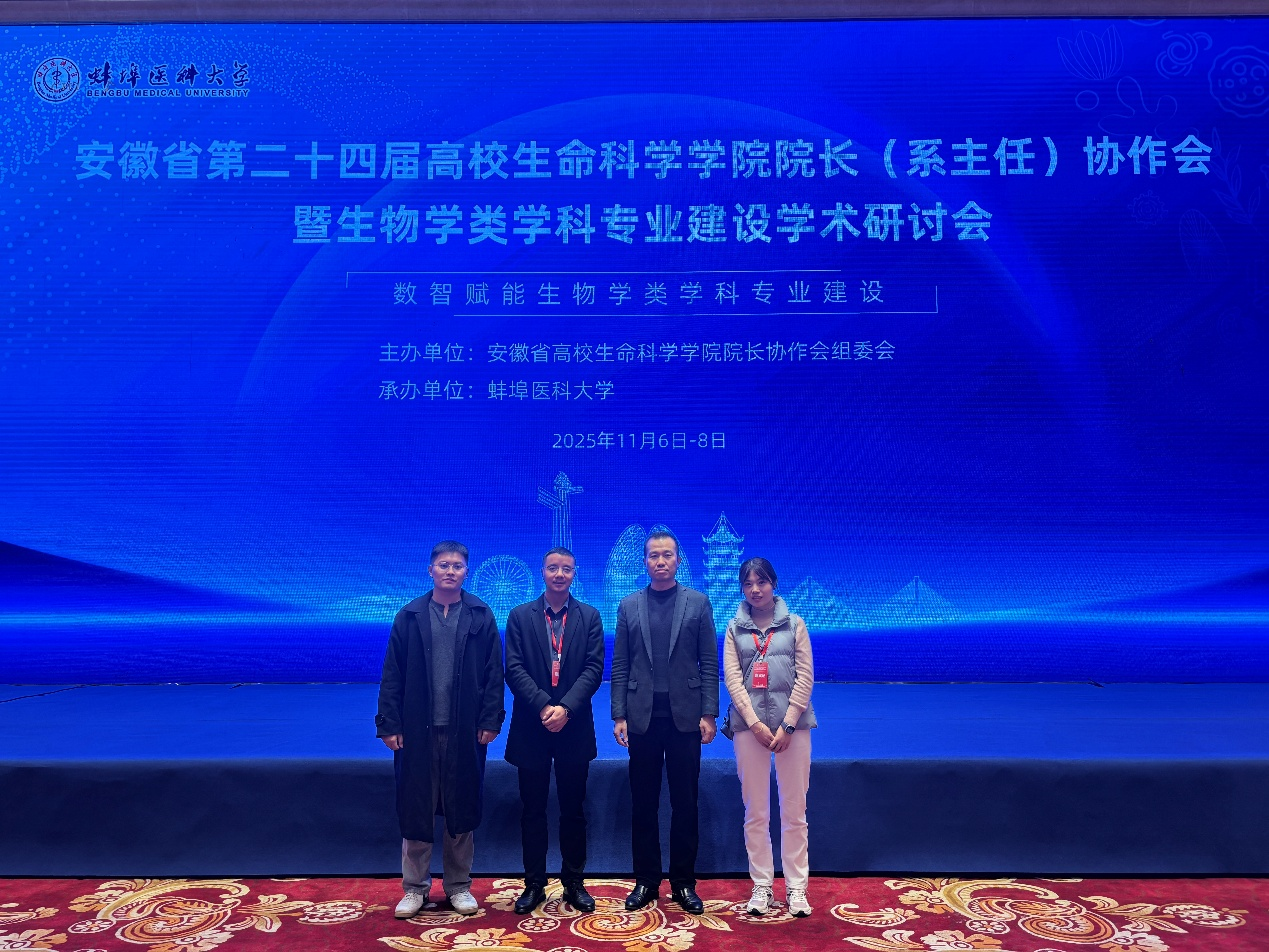 11月6日至8日,安徽省第二十四届高校生命科学学院院长(系主任)协作会暨生物学类学科专业建设学术研讨会在蚌埠医科大学召开,来自全省21所高校生命科学学院的领导与教师代表参加会议。生命科学学院院长吴彦、副院长李从虎一行4人应邀参会。