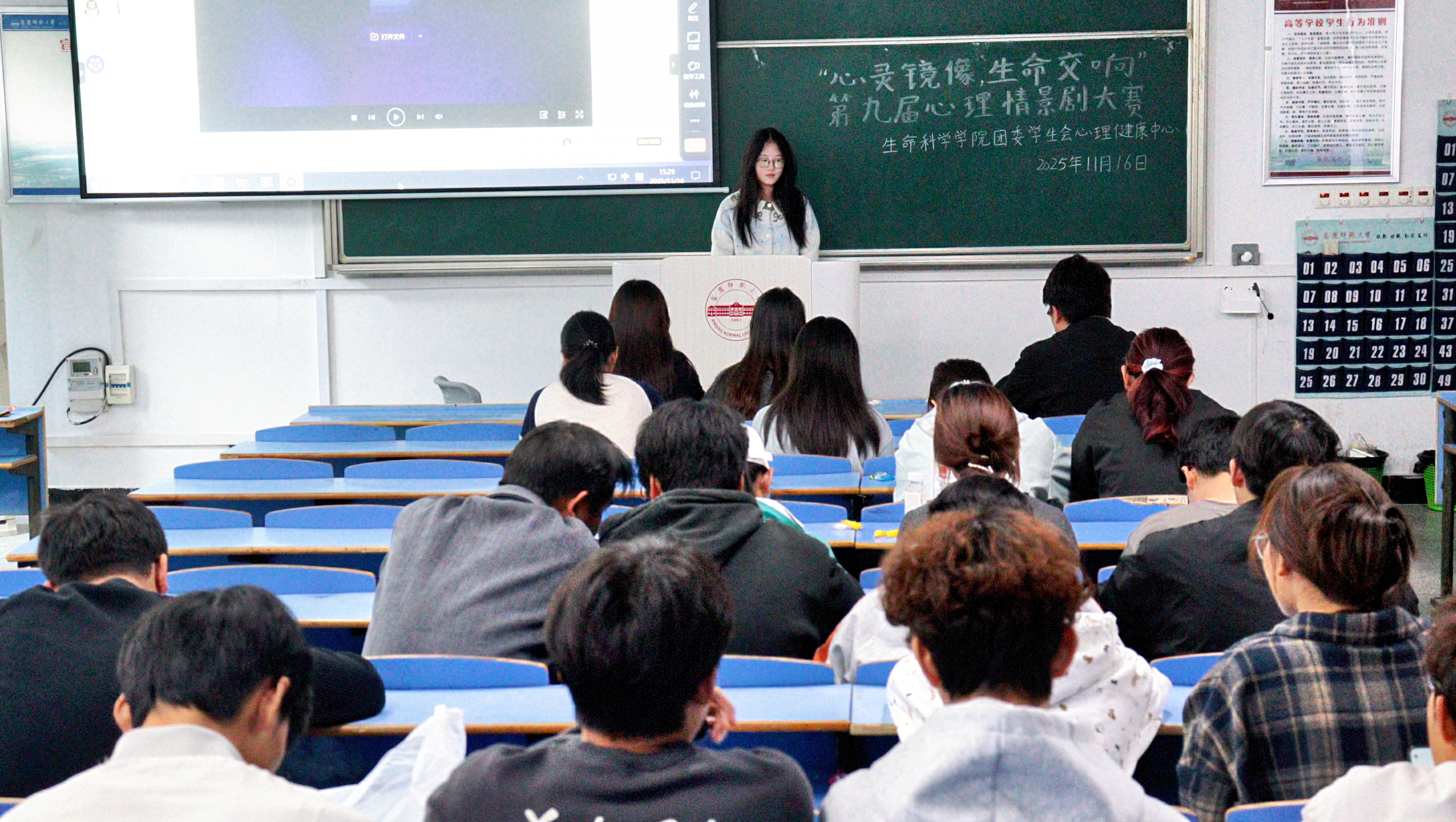 2025年11月16日下午14:00,生命科学学院团委学生会心理健康中心主办的“心灵镜像,生命交响”第九届心理情景剧大赛在C206教室正式开场,这场持续3小时的活动,吸引了全院7支队伍登台,不大的教室挤得满满当当,笑声与轻声的共鸣始终裹着现场的温度。