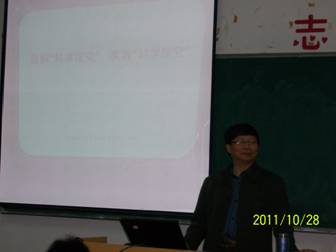 2011年10月28日上午,在安庆师范学院文溯楼500教室,参加“国培”计划学习的初中生物班的全体学员,认真聆听了教育部中学生物课程标准修订组核心成员、南京师范大学生命科学学院副院长、博士生导师汪忠教授作的《理解科学探究,实践科学探究》的专题讲座。