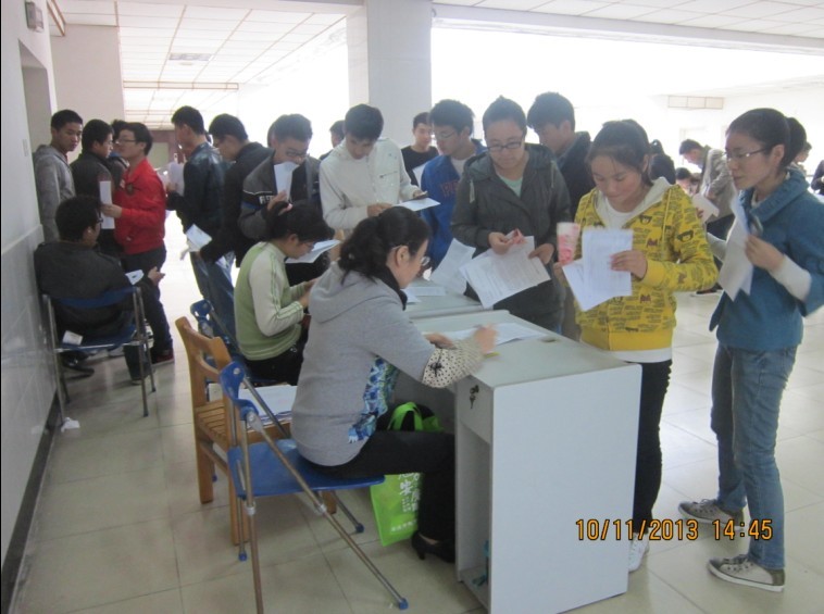 11月10日下午,生科院14届毕业生参加了在菱湖校区图书馆五楼举行的2014年硕士研究生缴费、摄像工作。在现场工作人员和班级辅导员的指导下,考研报名工作进行有条不紊,据统计,生科院今年报名考研共计242人,其中生物科学专业94人,生物技术专业148人,考研报名率达76.1%,创历年新高。考研作为生科院学生培养的品牌工作,学院上下非常重视,今后,学院将继续做好相关的各项服务工作,力争将此项工作做好,取得更好的成绩。(曹勇)
