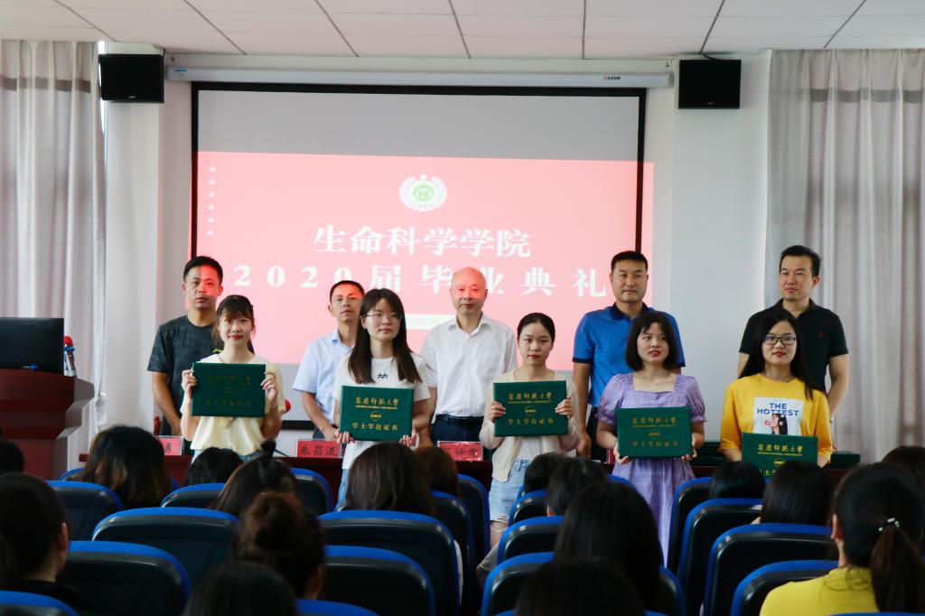 7月1日上午,生命科学学院在G202举办2020届学生毕业典礼,学院党委书记吴甘霖和班子全体成员、学院学位评定委员会委员、各科室负责人、2020届毕业班辅导员、教师代表和返校的2020届毕业生70余人参加了典礼,典礼由学院党委副书记朱昌流主持。