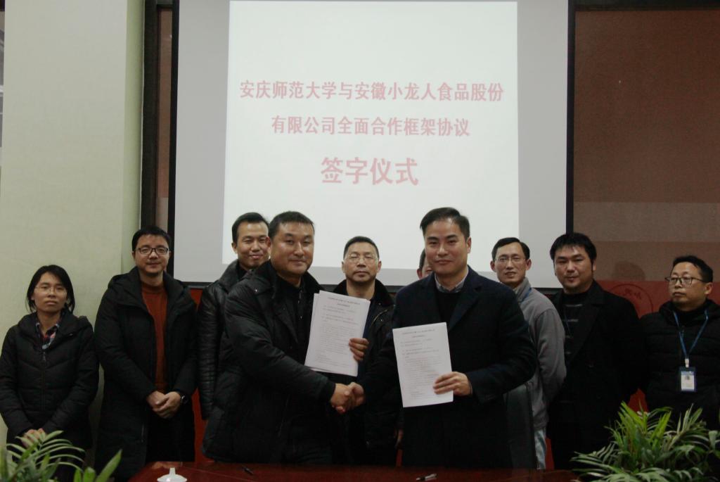 1月23日下午,生命科学学院在校党委常委、副校长汪时珍的带领下,与安徽小龙人食品股份有限公司签署了全面合作框架协议。