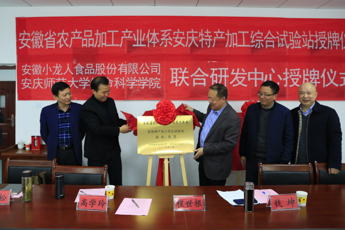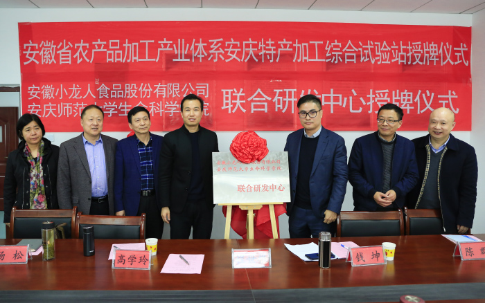 3月29日,生命科学学院举行安徽省农产品加工产业体系安庆特产加工综合试验站授牌仪式暨生命科学学院与安徽小龙人食品股份有限公司联合研发中心授牌仪式。安徽省农业农村厅科技教育处处长程世根,安徽省农产品加工产业技术体系首席专家钱坤、安徽小龙人食品股份有限公司总经理李志兴等企业人员与生命科学学院负责人参加授牌仪式。仪式由生命科学学院党委书记吴甘霖主持。