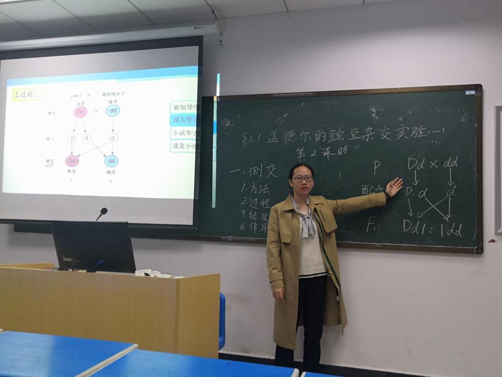 为了提高师范生教学技能,让2017级生物科学陈婧同学做好充分准备,更好地参加第十届安徽省高等学校师范生教学技能竞赛,10月15日下午4:30在G102教室,生命科学学院举行了2019年师范生教学技能模拟赛,我院周多奇院长、吴彦副院长,指导老师龚莉老师和穆丹老师担任评委。