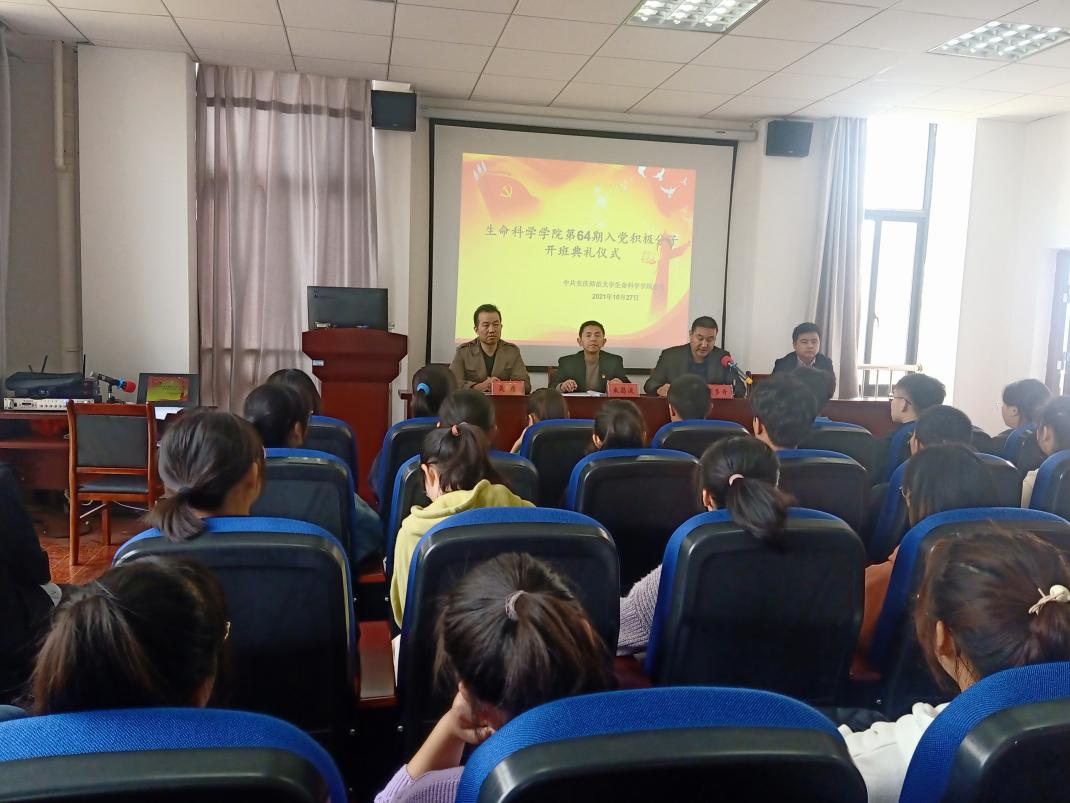 10月27日上午,生命科学学院在G202举行64期入党积极分子培训开班仪式。学院党政领导班子全体成员、第64期入党积极分子等90余人参加会议。副书记张辉主持会议。