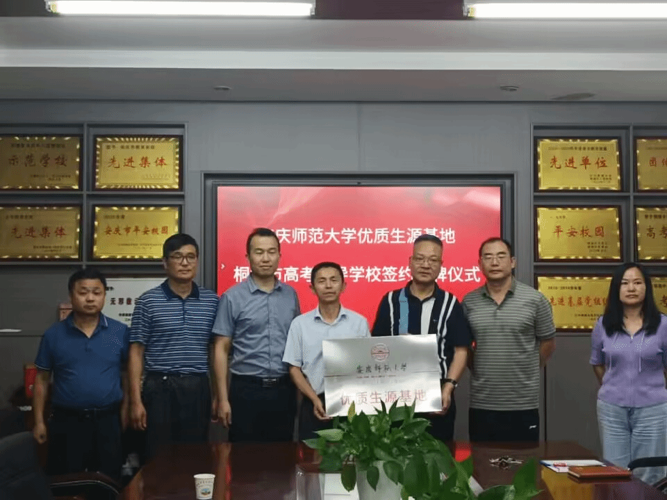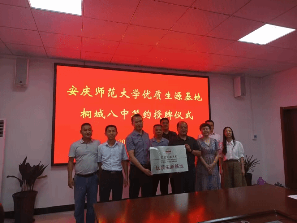 安庆师范大学生命科学学院一行代表学校分别与铜陵市第三中学、望江中学、桐城市第八中学、桐城市高考辅导学校签订了安庆师范大学优质生源基地合作协议书并授牌。