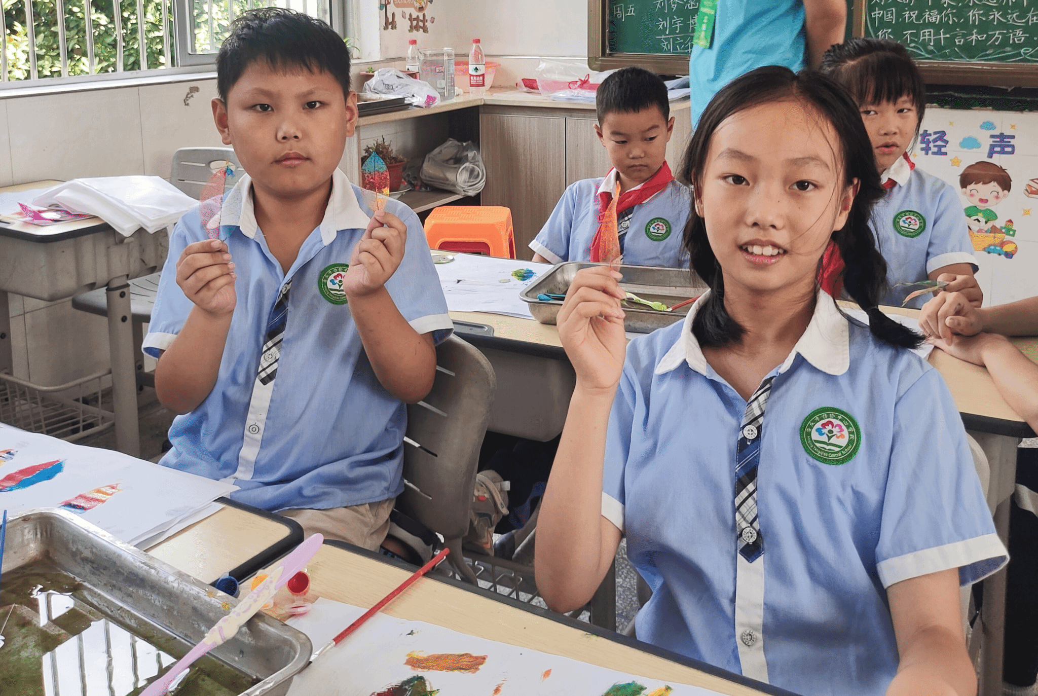 煮好叶片、刷去叶肉、压干水分、绘制图案……科普团成员将叶脉画的制作技术带入校园,让孩子们也能动手操作,亲身体验自然的神奇“魔法”。