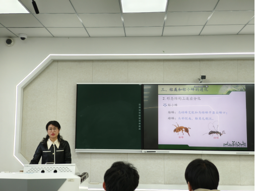 项小燕教授以唇形科鼠尾草属和桑科榕属为例,分别以学生们熟悉的植物入手,重点从花的结构和传粉昆虫的适应特征两个方面进行阐述,同时介绍了这两大类群相关的研究进展。通过鼠尾草属与传粉者的介绍让学生们意识到,随着全球气候的变暖及人类活动的干扰,植物和传粉者的群落结构、地理分布等都在改变,可能会导致两者空间分布的不匹配,植物一旦失去长期协同进化的传粉媒介尤其是某种专一的传粉昆虫,植物的繁殖率就会大大降低,因而,保护环境就是保护人类自身。通过榕属及传粉小蜂的介绍,让学生们了解到,随着科学技术的不断进步,科研工作者对榕属-榕小蜂传粉的认知发生了重要转变,由最初一对一高度专一性的错误认识到一种榕属植物可以有多个传粉者及一个传粉者可以对多种榕属植物进行传粉的重要转变。