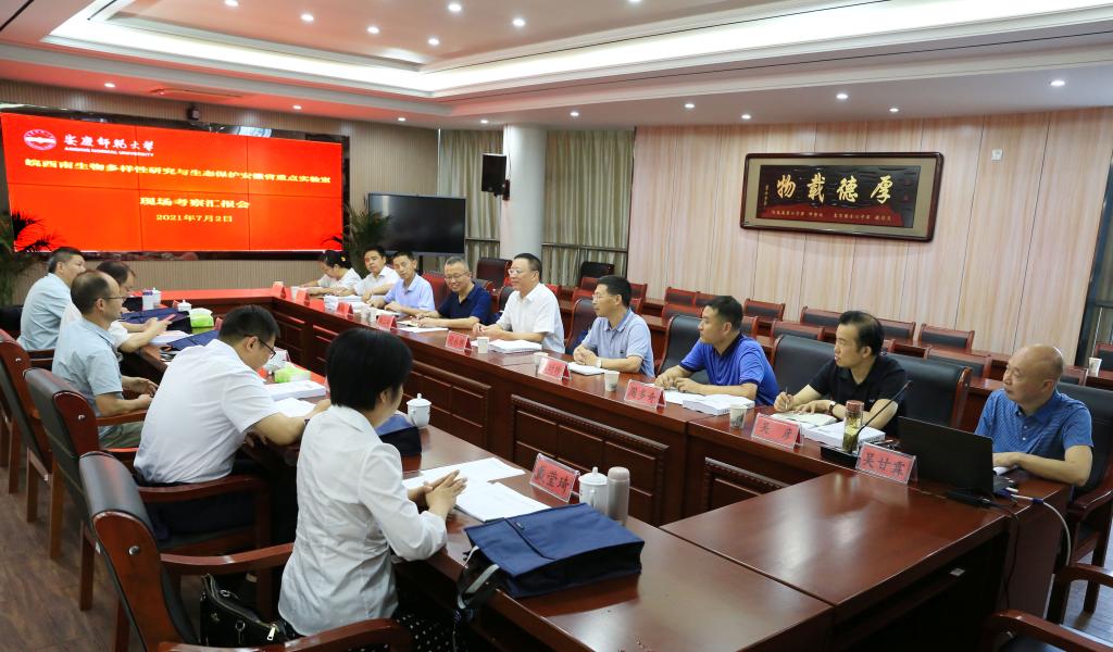 7月2日上午,安徽省科技厅组织专家对我校皖西南生物多样性研究与生态保护安徽省重点实验室进行现场考察。校长闵永新教授,副校长汪时珍教授出席现场汇报会。学校科研处负责同志、学院全体党政班子、省重点实验室负责人和学术骨干等参加会议。副校长汪时珍主持会议。