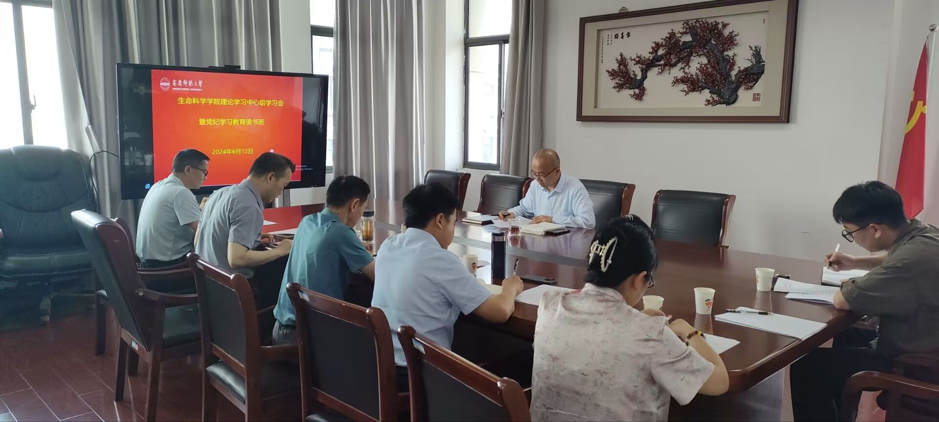 6月12日,生命科学学院在G402举办党纪学习教育专题读书班,学校党委常委、副校长肖新到会指导,学院党委理论学习中心组全体成员参加读书班。