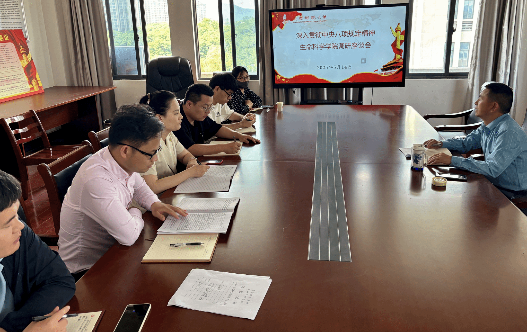 5月12日至14日,生命科学学院领导班子分别深入到各党支部开展深入贯彻中央八项规定精神学习教育调研,全体党员和教师代表出席座谈会。