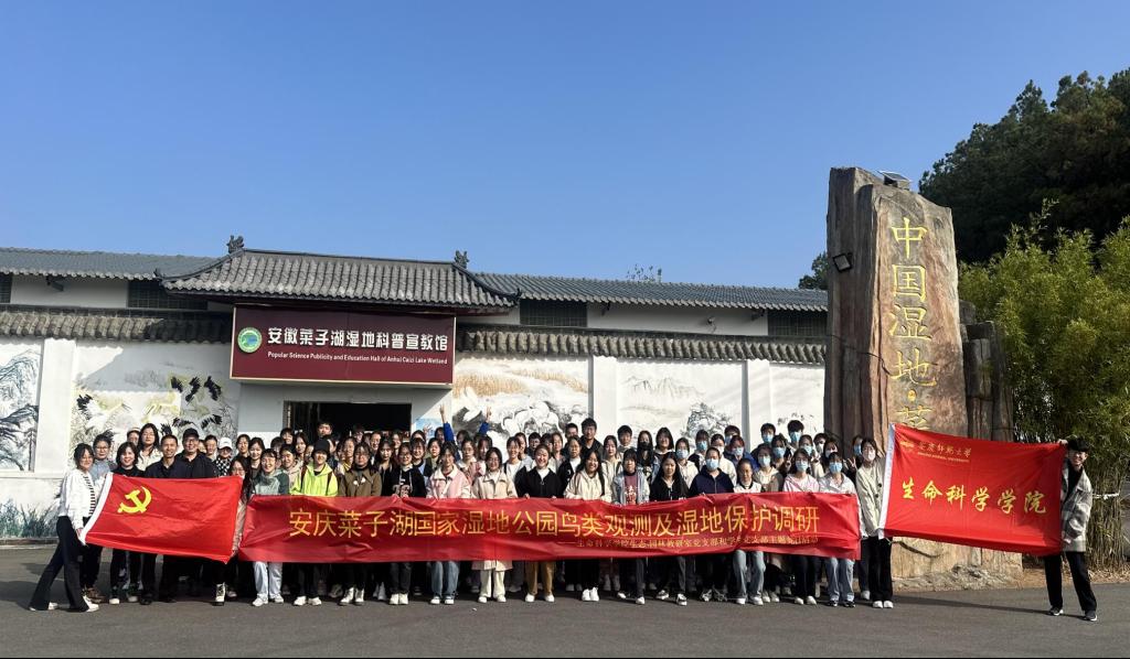 为进一步贯彻落实习近平生态文明思想,深刻领悟“生态兴则文明兴、生态衰则文明衰,人与自然和谐共生的新生态自然观”。11月20日,生命科学学院生态教研室党支部、学生党支部联合学院生态俱乐部,带领部分入党积极分子和大一新生到安庆市菜子湖国家湿地公园进行湿地鸟类观赏和生态环境问题调研活动。