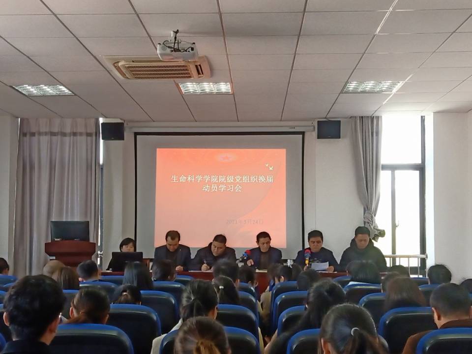 3月24日下午,生命科学学院在G202召开院级党组织换届动员学习会,全体党政领导、教师和学生党员出席大会,学院党委书记朱昌流主持会议并作动员讲话。