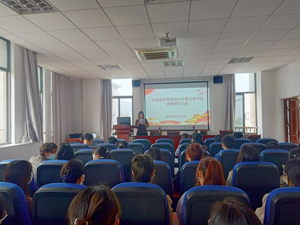 3月16日下午,生命科学学院2021年度党支部书记抓党建述职评议考核大会在G楼202会议室举行。学院党委委员、党支部书记和全体正式党员参加了会议,学校党委组织部副处级组织员李元同志到会指导,会议由学院党委书记朱昌流主持。