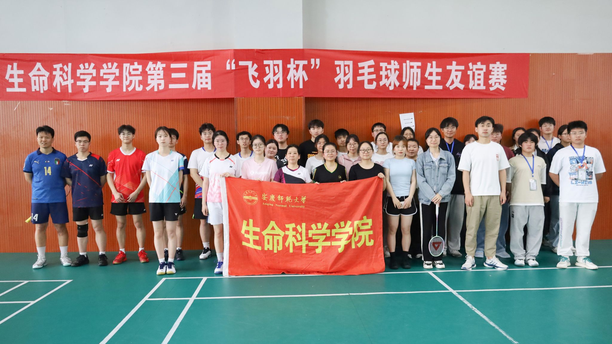 4月13日,生命科学学院于体育馆三楼羽毛球馆举办第三届“飞羽杯”羽毛球师生友谊赛。本次比赛分为男子单打、女子单打和团体赛三个项目,学院教师、研究生和本科生近60人参加比赛。