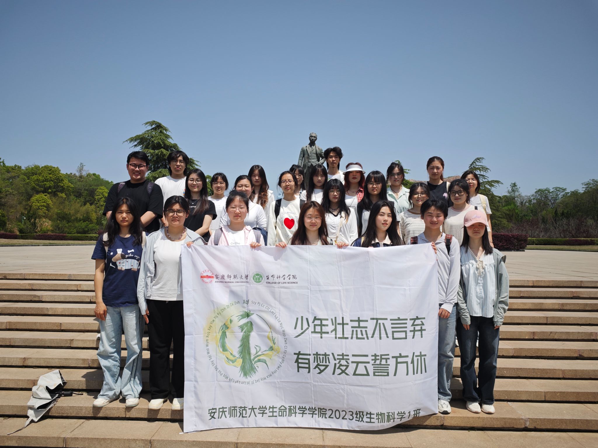4月18日,2023级生物科学1班(卓越教师班)开展“传红色基因 增文化自信”的主题团日活动,踏上了前往安庆博物馆和独秀园的文化探索之旅,于岁月的长河中寻迹文明,在同窗的相伴中凝聚情谊。领悟地域文化,增强班级凝聚力与文化认同感。