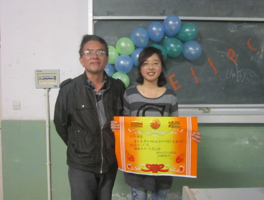 此次比赛共有12名选手参与角逐,比赛过程十分精彩。赛程分为两个环节,第一环节以“木桶效应”为主题,每位选手进行限时5分钟的演讲,选手们演讲内容精彩,立意新颖,尤其是十一号选手陶敢争同学以“元芳此事你怎么看”为关键词的演讲,语言细腻,发音标准,博得现场评委和观众的一致好评;第二环节选手两两一组以指定题目现场进行模拟对话,选手们表现灵活,气氛活泼,特别是俞雅文同学故意把Chris的年龄说成了30岁,突然“长了8岁”的Chris在场边大呼无奈,逗乐了大家。比赛结果,11级生科1班张扬同学获得第一名,其他5名同学分获第二、三名。赛后,Chris老师和魏和平院长分别就比赛过程作了精彩点评,结合选手表现提出需要改进和提高的地方,选手们听后感觉获益匪浅。
