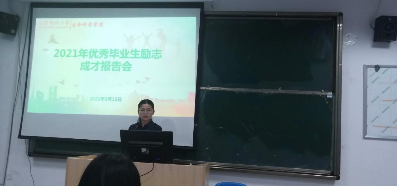 为进一步践行“爱心资助、励志发展、成长成才”的理念,提高资助育人水平,5月13日,生命科学学院在G103教室举办“优秀毕业生励志成才报告会”。报告会邀请了2017级优秀贫困毕业生钱申、钱玮欣、张玥和刘体慧同学,此次活动由徐启凤老师主持,团委副书记马志勇参加报告会。