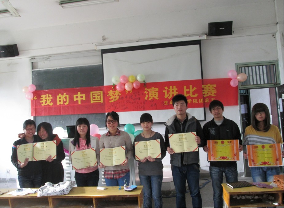 为了深入学习贯彻习近平主席“中国梦”思想发言,增强当代大学生的爱国主义精神,提高学生综合素质,丰富校园生活。4月10日下午,生命科学学院在菱湖校区教学楼215教室成功举办了“我的中国梦”演讲比赛。此次大赛邀请了生科院数位老师担任评委。