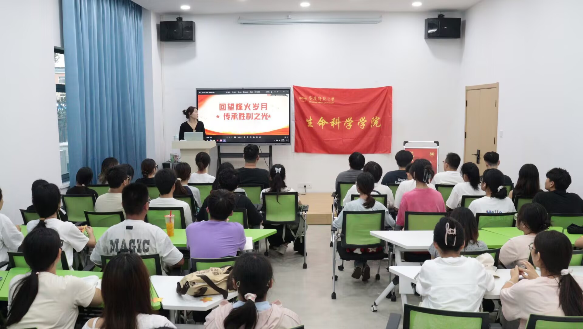 9月2日下午,生命科学学院在学生一站式服务中心开展纪念中国人民抗日战争暨世界反法西斯战争胜利80周年主题团日活动,引导青年学生铭记抗战历史,弘扬伟大抗战精神,砥砺青春矢志奋斗。活动吸引百余名学生参加。