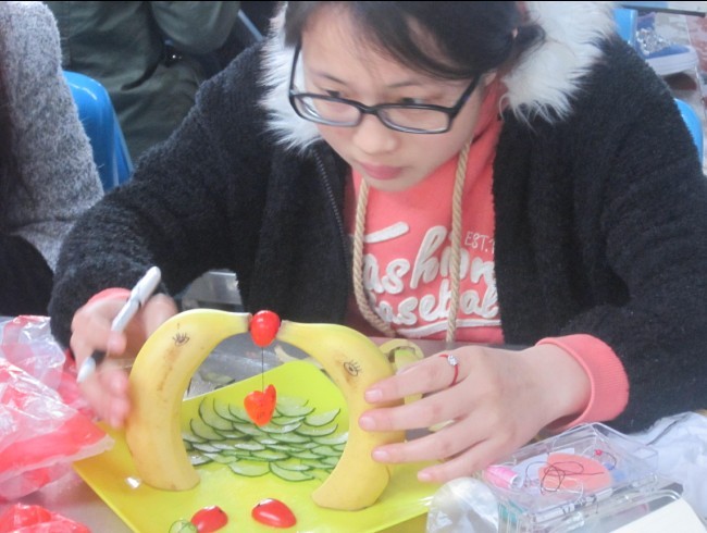 为丰富大学生在校生活,锻炼学生的动手能力,培养想象力, 3月19日下午,生命科学学院团总支学生会在敬敷食堂举办了第六届水果拼盘大PK活动。比赛过程中,选手们依靠丰富的想象力,细致而有创意的手艺制作了一个个精美的拼盘,并依次上台介绍作品的寓意,选手们精美的拼盘以及生动的解说,赢得了阵阵掌声。其中题为“海底世界”的作品以两支香蕉摆出两只海豚状,并用多种水果摆出海底场景,撒上食用亮粉,让评委眼前为之一亮。最终,通过现场投票,作品“海底世界”获得冠军。通过举办本次活动,展现了同学们的风采,加强了同学们之间的交流,展现了同学们个性、创新、主动思考及积极向上的精神风貌。(曹勇)