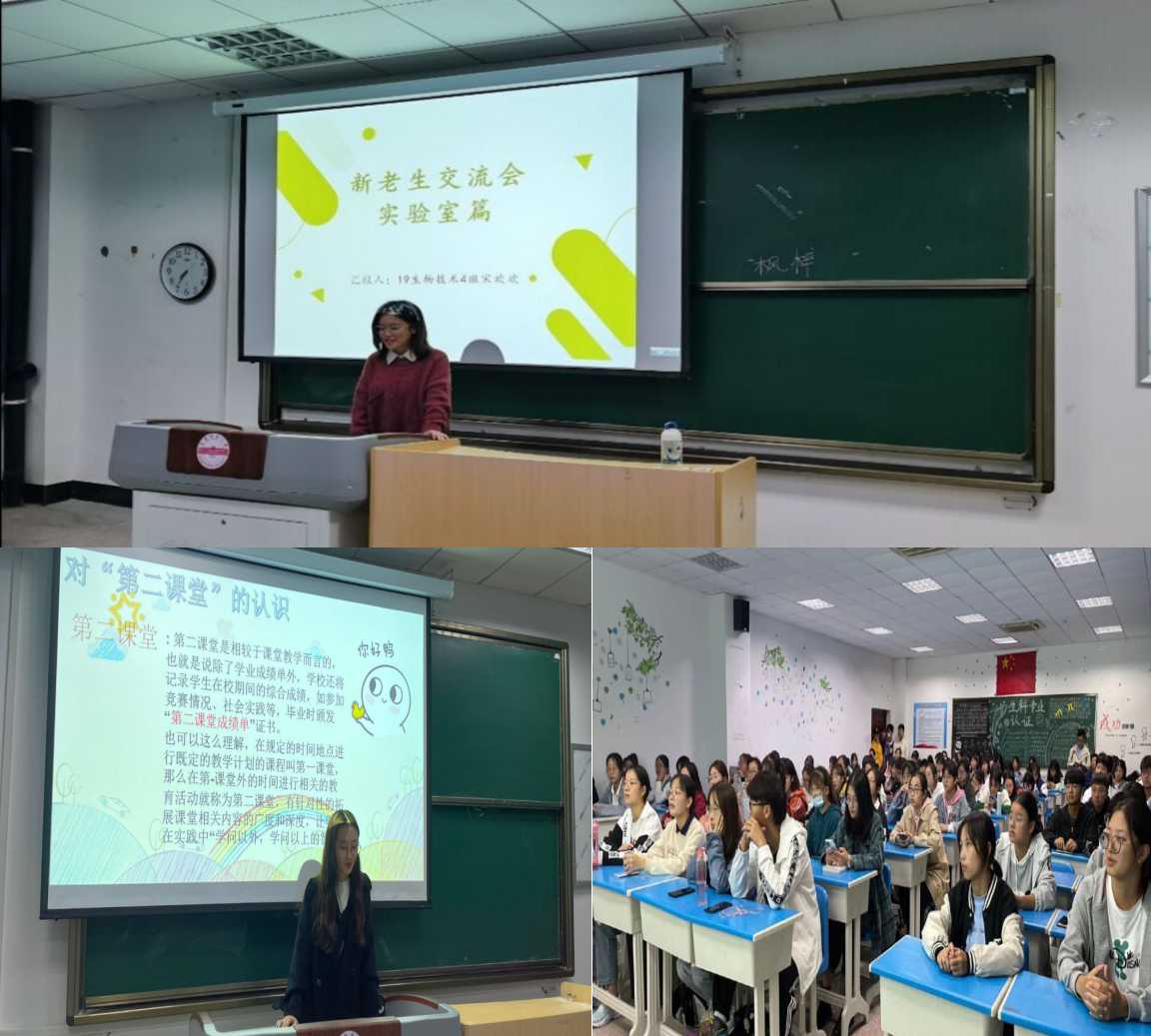 为落实《生命科学学院2021级新生“1+3+N”模式入学教育实施方案》,帮助大一新生更快更好地适应大学的学习和生活,促进新老生之间的交流,10月15日生命科学学院学生会实践服务部在G103和G105举办“新老生经验交流会”。活动邀请了2019级和2020级的五位优秀老生代表,分别从实践比赛、第二课堂、野外实习等方面与2021级新生交流,提出了宝贵的意见和建议。