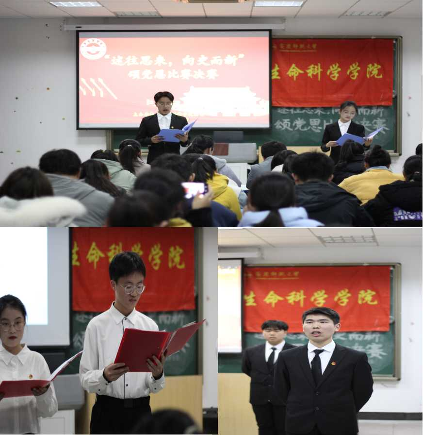 百年筚路蓝缕,奠定基业;百年岁月峥嵘,初心不改。为培养大学生知党史感党恩的意识,强化责任担当,提高综合能力,生命科学学院举办了“述往思来,向史而新”颂党恩比赛。经过初赛选拔,决赛在12月14日晚拉开帷幕。院党委副书记张辉以及徐启凤、石水琴、宋婧、陆天雨四位老师出席此次活动,并担任评委。