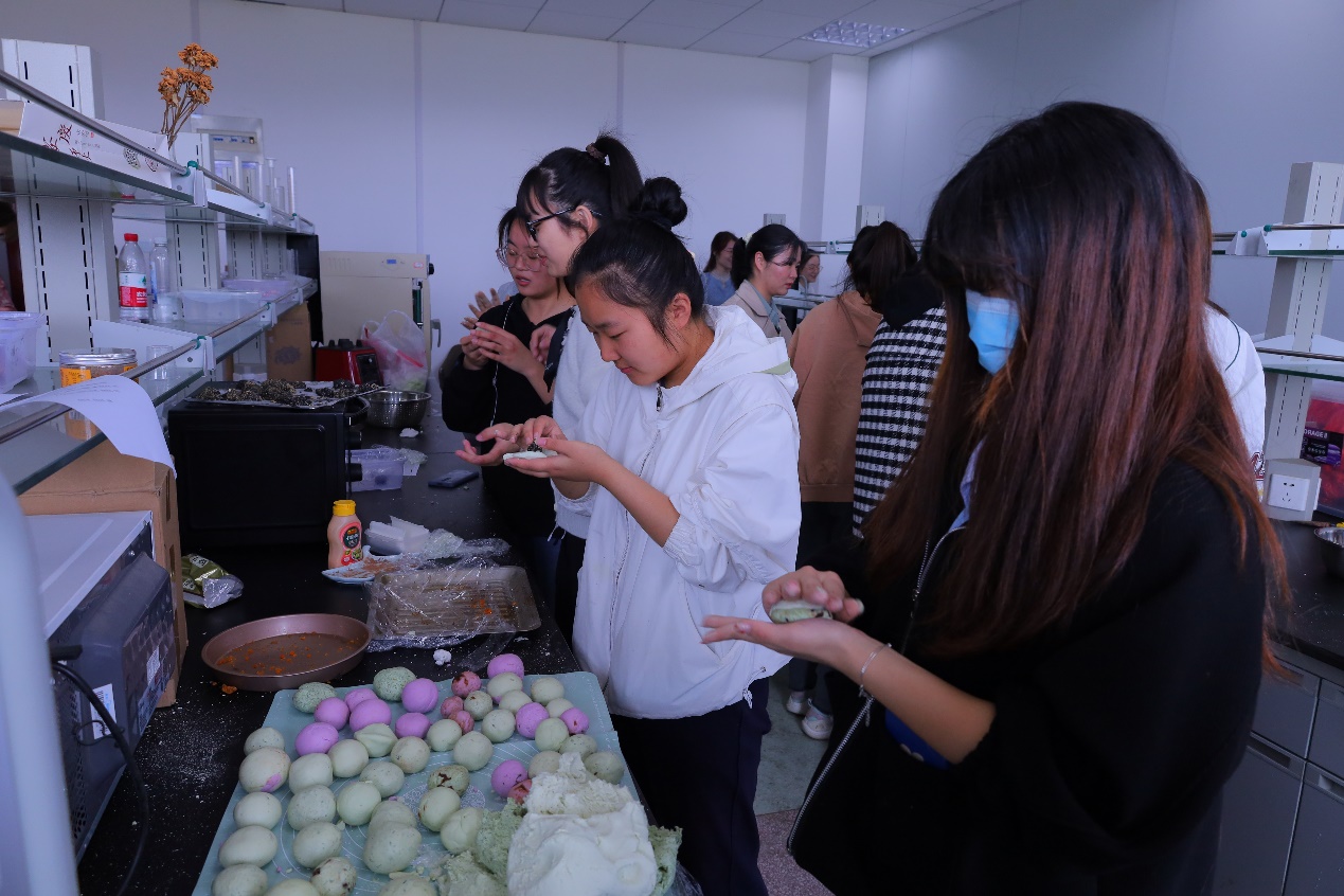 揉米面、榨青汁、包上馅儿……实验室中,三十余名学生各司其职,默契搭配。“考虑到师生们口味、偏好都各有不同,我们特意准备了抹茶粉、可可粉、紫薯粉揉出颜色各异的面团,包裹进蛋黄馅、豆沙馅、芝麻馅等不同口味的馅。”活动负责人生物技术专业2018(2)班的张勇表示,希望这种“开盲盒”式的口味选择能让师生们品尝出“温暖的味道”。“我们的青团是在实验室中进行制作的,希望能在展现专业特色时也带给师生们温暖和感动,为此我们每个人都打起百分百的精神参与到制作中。”