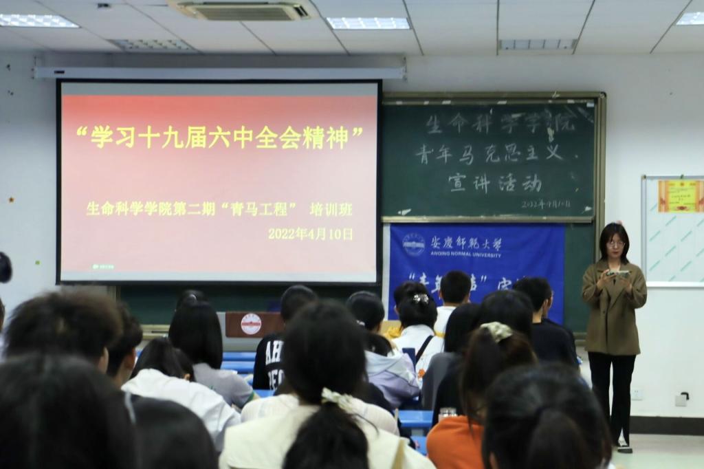 为深入学习宣传贯彻党的十九届六中全会精神,大力弘扬伟大建党精神,生命科学学院4月10日在G楼107开展“学习十九届六中全会精神”活动。此次活动邀请了马克思主义学院“青年新声”宣讲团的成员李佳燕、王思涵、刘继文为同学们进行宣讲。院第二期“青马班”学员参与这次活动。
