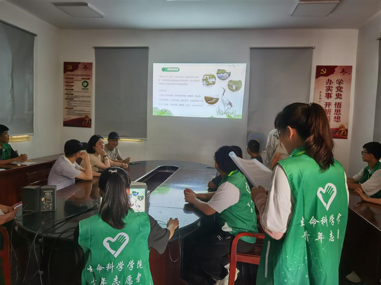 为提高社会公众保护湿地意识,将《中华人民共和国湿地保护法》贯穿于实践中,彰显“绿水青山就是金山银山”理念,助力乡村振兴。6月26日-7月6日,生命科学学院“湿”情画意——“湿地保护法”暑期宣传实践团走访了安庆师范大学、菱湖公园、菜子湖国家湿地公园、破罡湖闸管理所等单位及周边社区,开展以“宣传湿地保护,助力乡村振兴”为主题的“三下乡”实践活动。
