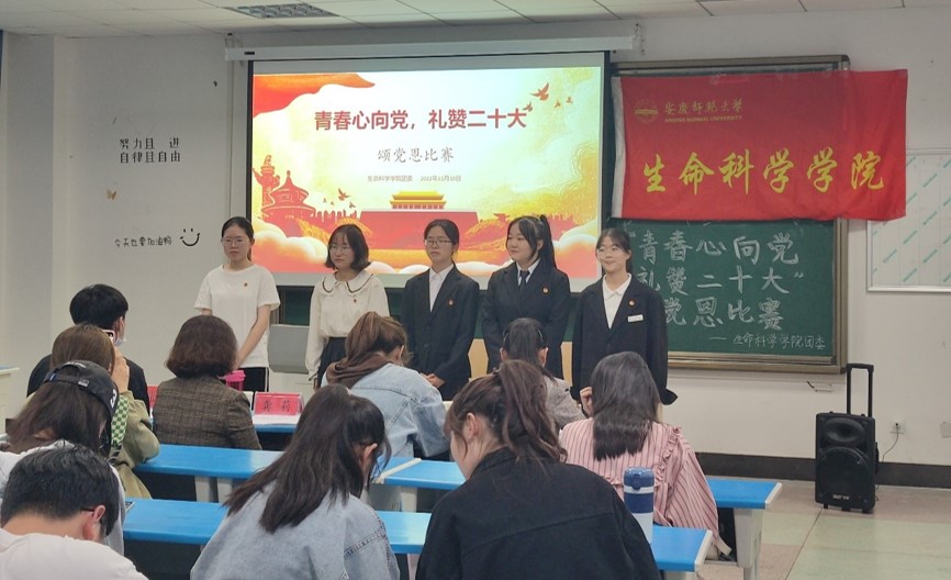 “唱支山歌给党听”“举起铁拳,站在党旗下,铮铮誓言献给党”“礼赞二十大,奔赴新征程”……生命科学学院11月10日举办“青春心向党 礼赞二十大”颂党恩比赛,学院教师龚莉、张冉冉、徐启凤、张彤受邀担任评委。