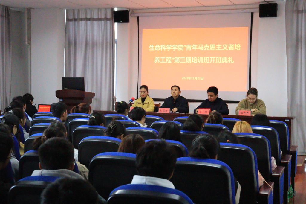 11月23日,生命科学学院在G202会议室举行了“青马工程”第三期培训班开班典礼,进一步做好校院两级“青马工程”工作,选拔、培养一批坚定的马克思主义者。院党委书记朱昌流、副书记张辉、党委委员张冉冉出席典礼,全体青马班学员参加典礼。会议由团委负责人徐启凤主持。