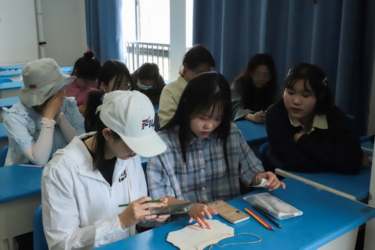 “第一次参加这种活动,感觉很新奇。”紫色线条勾边,小小的标识牌上写上学名、类别、别名等信息,数学类专业2022(5)班的李煜特意挑选“紫藤”,作为创作的主题。她表示,在制作时,她和小组成员在配色的选择上力求与紫藤花颜色保持一致。在开展活动之前,她和成员之间互不相识,在共同制作中逐渐变得熟悉,“没想到还能认识新朋友”。