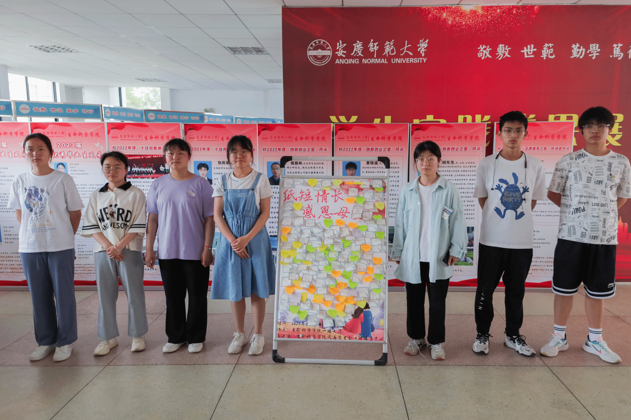 “谁言寸草心,报得三春晖。”“感谢您不是超人,却为我变成了万能!”“不用担心老之将至,你的岁月会一直有我!”……5月14日,生命科学学院在学院一楼大厅举办“纸短情长,感恩母爱”活动。近300名学生参与活动,一同向母亲表达感恩。