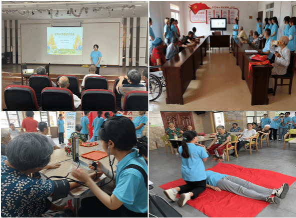 据了解,“青春暖夕阳”暑期社会实践团先后前往安庆市大龙山镇养老服务中心与安庆大观区怡康养老服务中心,开展了健康讲座、免费测量血压、跳早操等多项服务活动,为老年人安度晚年的愿景注入“心活力”。
