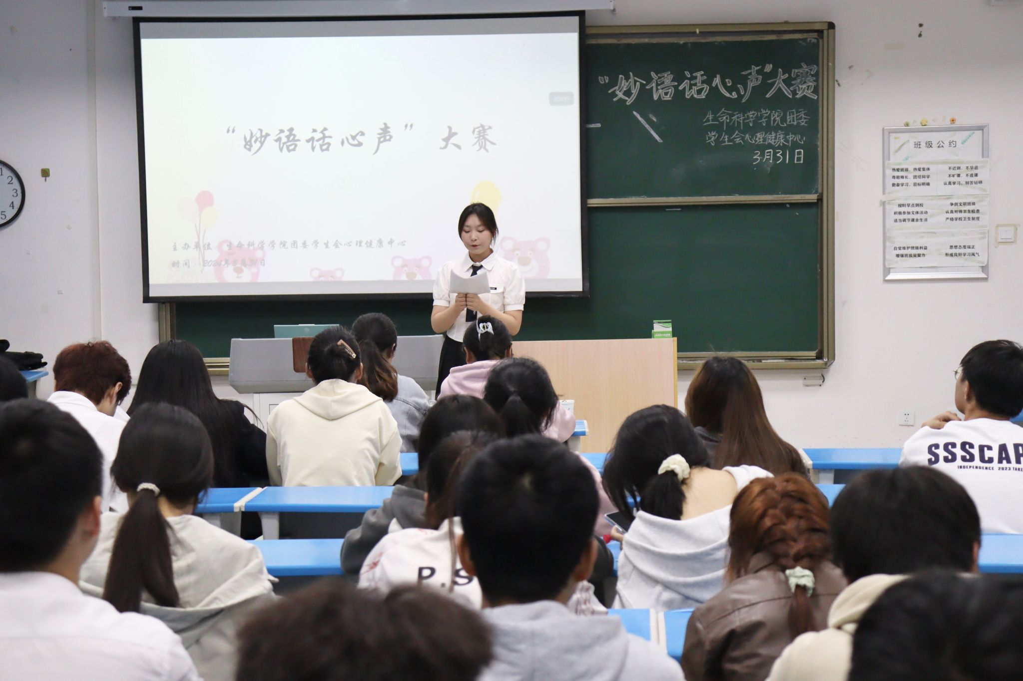语言是心灵的门窗,为丰富同学们的大学生活,锻炼语言表达、逻辑思维及创新能力,给予更多同学一个表达自我、分享见解的空间,生命科学学院于3月31日晚在G103室举办了“妙语话心声”比赛活动。