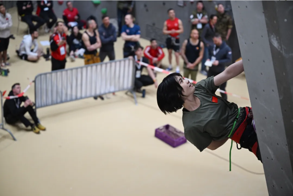 2025年3月,瑞士卢塞恩国际攀岩赛事现场,汪漫身披中国军人战袍,以绝对优势刷新女子速度攀岩项目纪录,创下我军选手在该赛事中的历史最佳战绩。领奖台上,她高举国旗的画面通过直播镜头传遍全球,向世界展示了新时代中国军人的风采。