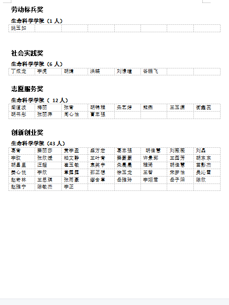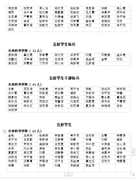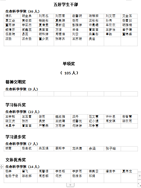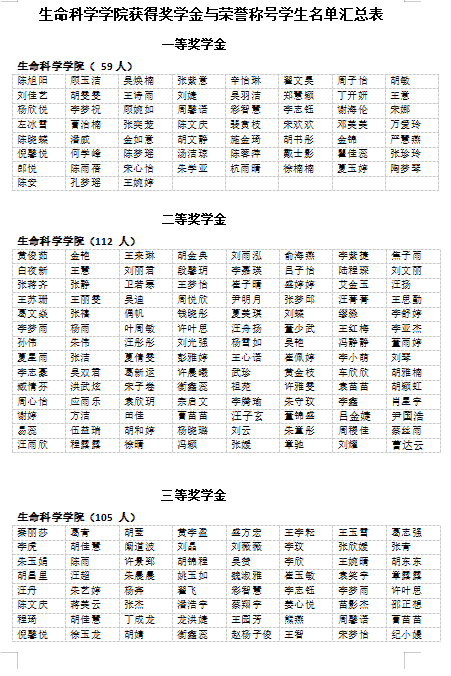 根据《关于做好2021—2022学年学生素质综合测评暨评优工作的通知》要求,按照《安庆师范大学学生素质综合测评实施办法(试行)》文件精神和规定程序,经个人申请,班级评议,学院评审,拟授予陈旭阳等59名同学校级一等奖学金, 黄俊茹等112名同学校级二等奖学金,秦丽莎等105名同学校级三等奖学金;拟授予吴焕楠等22名同学“五好学生标兵”称号,王意等41名同学“五好学生干部标兵”称号,金艳等62名同学“五好学生”称号,偶帆等46名同学“五好学生干部”称号,王李耘等22名同学学习标兵奖,胡莹等7名同学学习进步奖,杨奔等14名同学文体优秀奖,姚玉茹等1名同学劳动标兵奖,丁成龙等6名同学社会实践奖,阚道波等12名同学志愿服务奖,葛青等43名同学创新创业奖(具体名单见附件)。