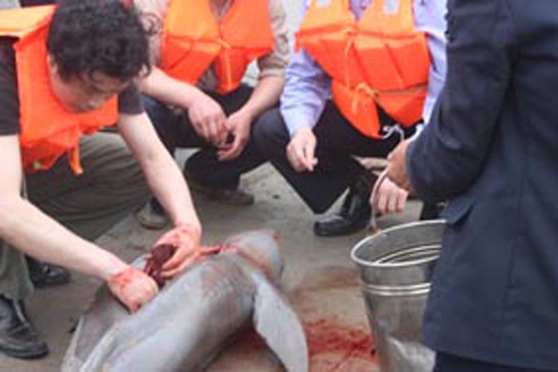 长江江豚已列入国家一级濒危保护动物,近期大量地死亡引起国内外媒体高度关注。4月24日至4月27日,农业部组织江豚死亡原因调查,我校于道平教授作为豚类专家应邀参加这次调查活动。