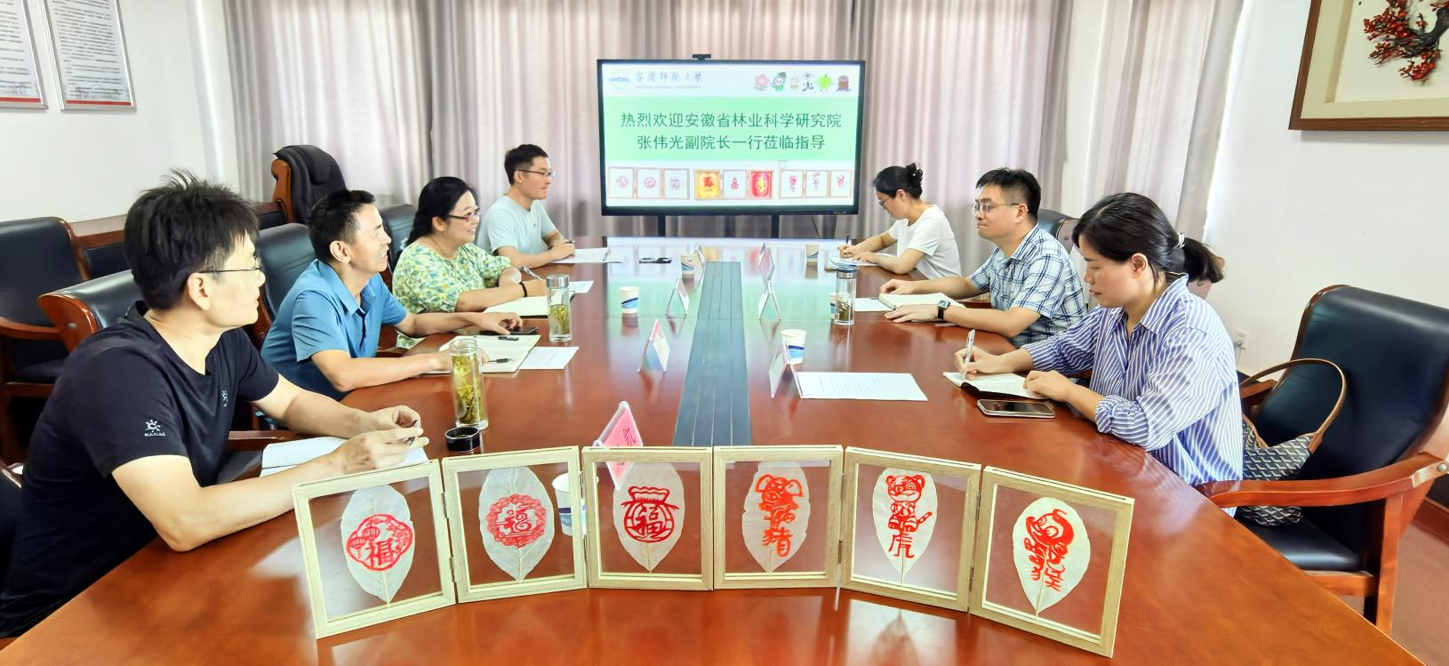 会上,穆丹代表我院对张伟光一行的到来表示热烈欢迎,并介绍了我院专业建设、人才培养、科研平台、科研团队等基本情况。张伟光介绍了安徽省林业科学研究院各研究所发展建设、科研团队、实验中心、科研项目等方面的情况。双方就科研团队建设、科研项目申报、人才培养、科学仪器共享使用、林草种质资源收集与保存项目实施合作等方面进行了充分交流,并就相关合作工作进行了有效沟通。