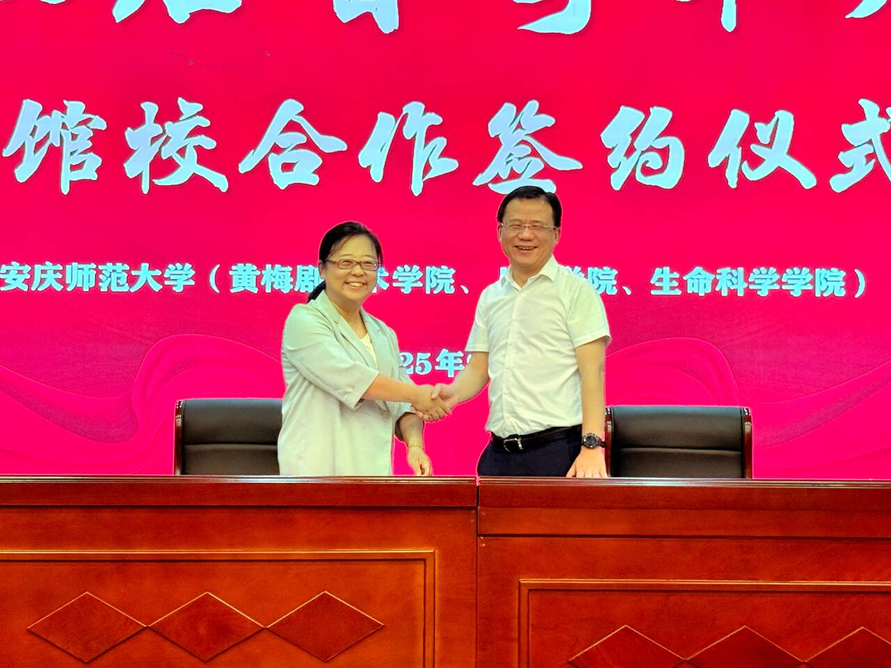 9月24日上午,国家一级博物馆——安庆博物馆与安庆师范大学黄梅剧艺术学院、人文学院、生命科学学院以及安庆市第四中学共同举行馆校合作签约仪式,正式建立研习基地。签约仪式在安庆博物馆三楼多功能报告厅隆重举行,各方代表共同签署合作协议并合影留念。生命科学学院副院长穆丹代表学院出席签约仪式,并在随后召开的“博物启智学术共育”馆校合作座谈会上,重点介绍了学院与各方合作开展的科普教育创新成果——“生命科学课程体系共创平台”,展现了馆校多方合作在推动科学普及与传统文化融合方面的积极探索。