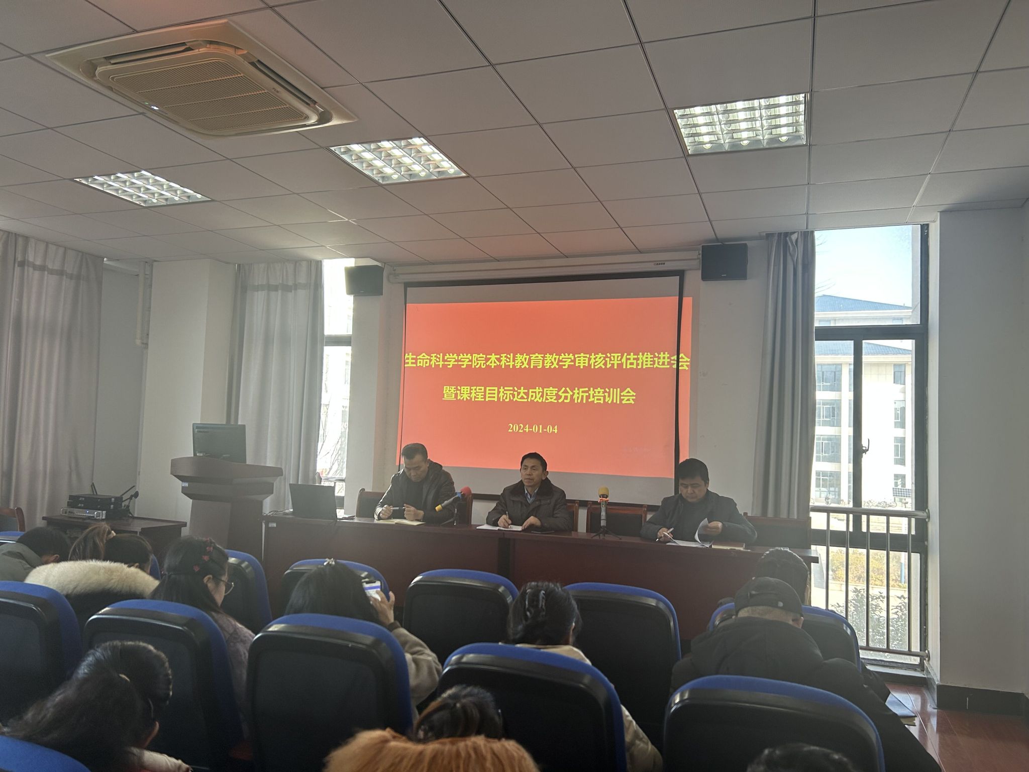 1月4日,生命科学学院召开教育教学审核评估推进会暨课程目标达成情况分析培训会,学院党政领导及全体教职工参加了会议。