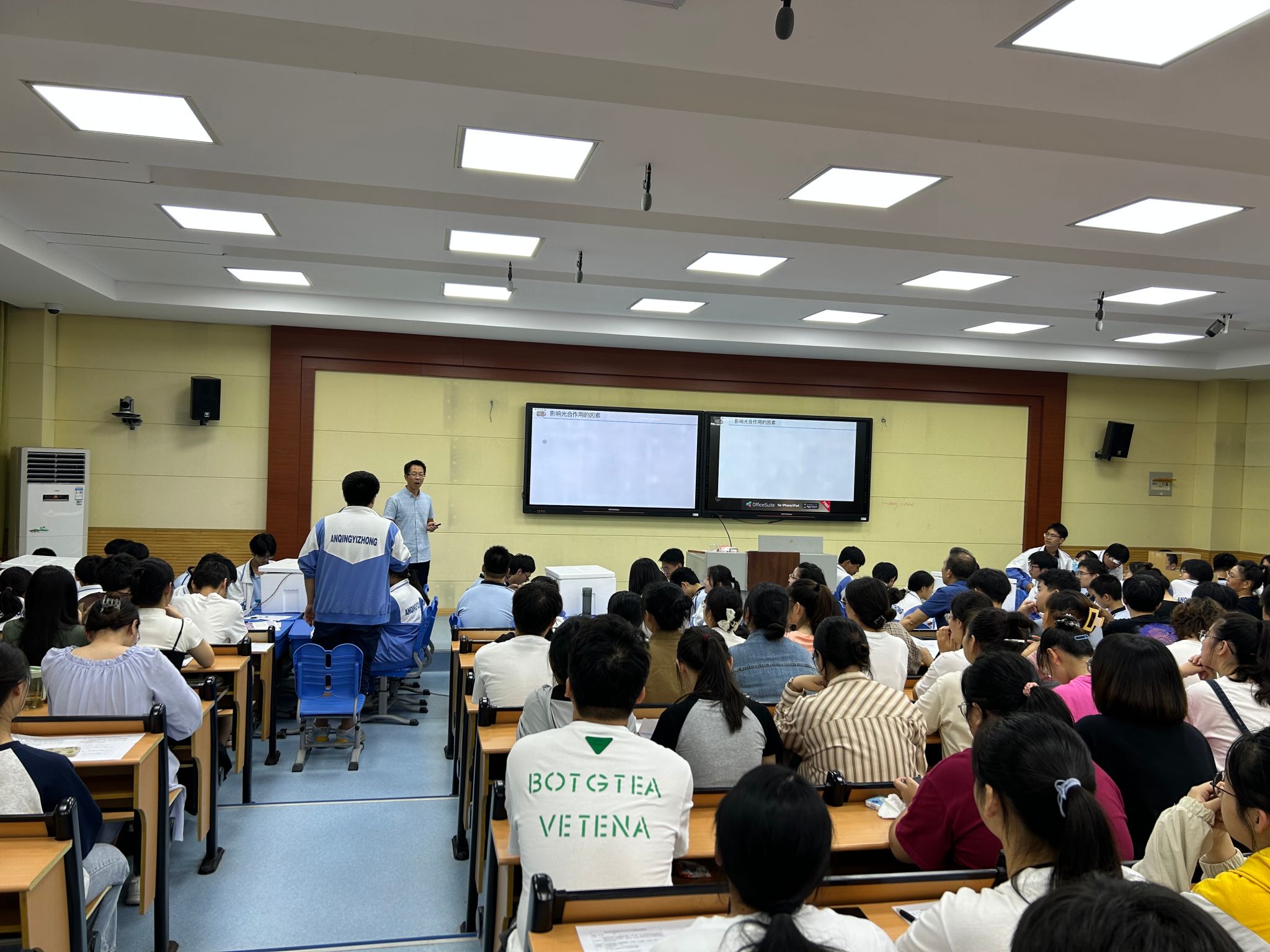 安庆一中龙山校区执行校长舒兴庆向同学们介绍了安庆一中的办学历史和教育理念,安庆一中教师发展中心副主任姜莉老师向同学们介绍了安庆一中的教研及青年教师成长培养情况。随后,生物组邹凯老师对高中生物实验“探究环境因素对光合作用强度的影响”进行公开授课,同学们现场观摩,感受了基于中学生核心素养培养需求的生物学实验教学节奏及氛围,并在授课结束后在生物组章霞云老师的组织下与安庆一中生物组的老师们共同探讨了在实验教学中的一些常见问题,让学生们了解了一线教师成长及教学的真实状况。